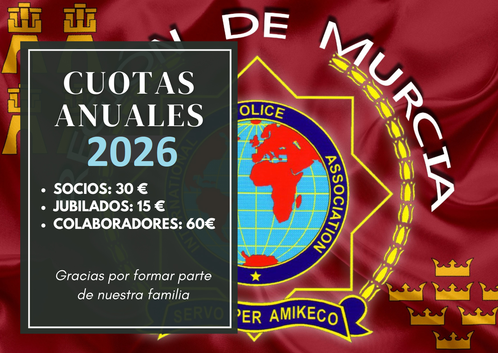 En primer lugar, desde IPA Región de Murcia queremos agradecerte sinceramente que formes parte de esta gran familia policial internacional. Vuestra implicación y apoyo constante son los que hacen posible que sigamos creciendo, organizando actividades, fomentando la amistad profesional y representando a nuestra región dentro y fuera de España.